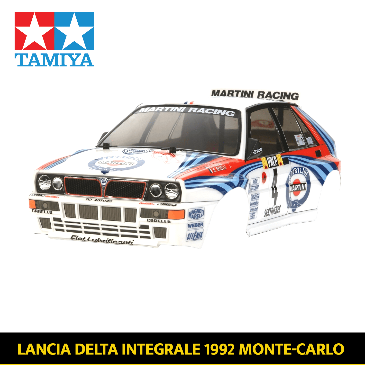 1/10th bodyshell of the Lancia Delta HF Integrale, with its iconic Martini Racing livery as it raced on Rally Monte-Carlo 1992.